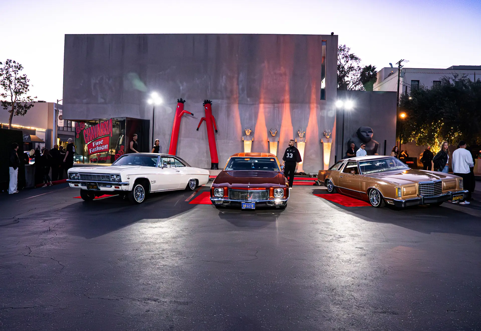 “I wanted to take a luxe store like Maxfield and turn it into the utter L.A. retail bargain basement.” Meanwhile, Willy’s had a great A-lister year – without paying any celebs to wear his clothes. “We don’t pay anyone, we don’t gift anyone,” he admitted. “So if they wear my clothes, it’s because they really want to.” Also on hand – the Willy Wanna-Be’s – guys and girls in Chavarria downtown finery, funky hats, loads of neck chains, edgy eyewear – call it the Cult of Willy. Added to the retro atmosphere: a dj blasting Latin music, many many margaritas, and three vintage muscle cars, just for effect. Also on hand: hardcore Willy shoppers like stylist B. Akerlund and husband/director Jonas