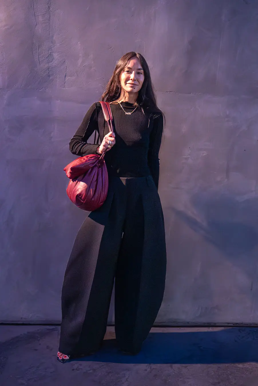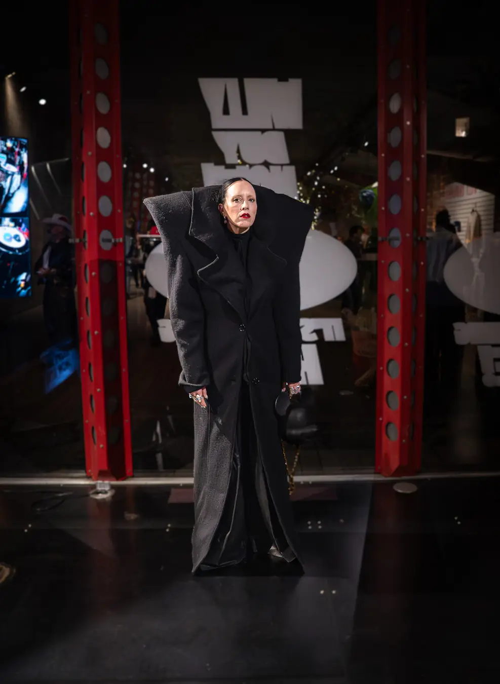 Akurlund, checking out the merch. B. donned a black coat with a neck so high, she was headless from the back – getting a jump on Halloween? “No,” she said bluntly. “This is for everyday. For Halloween, I’ll be in Manchester, styling Duran Duran.” I’m jealous.