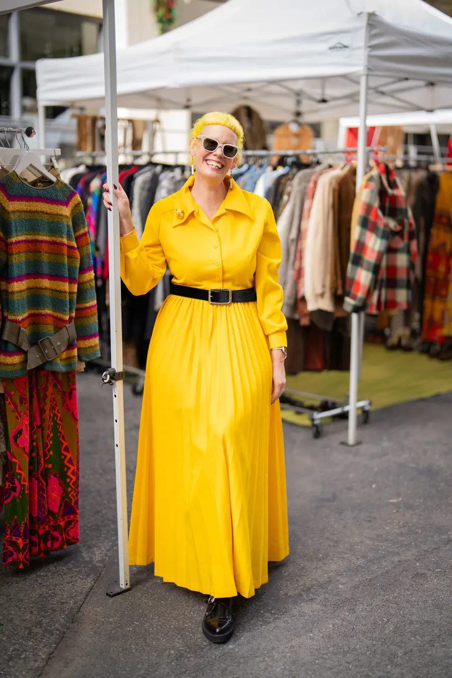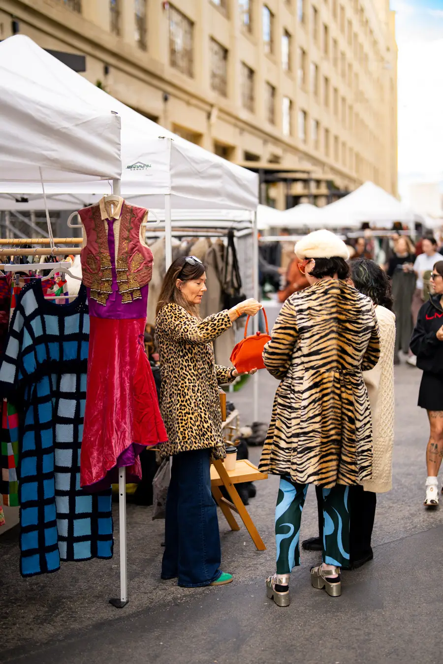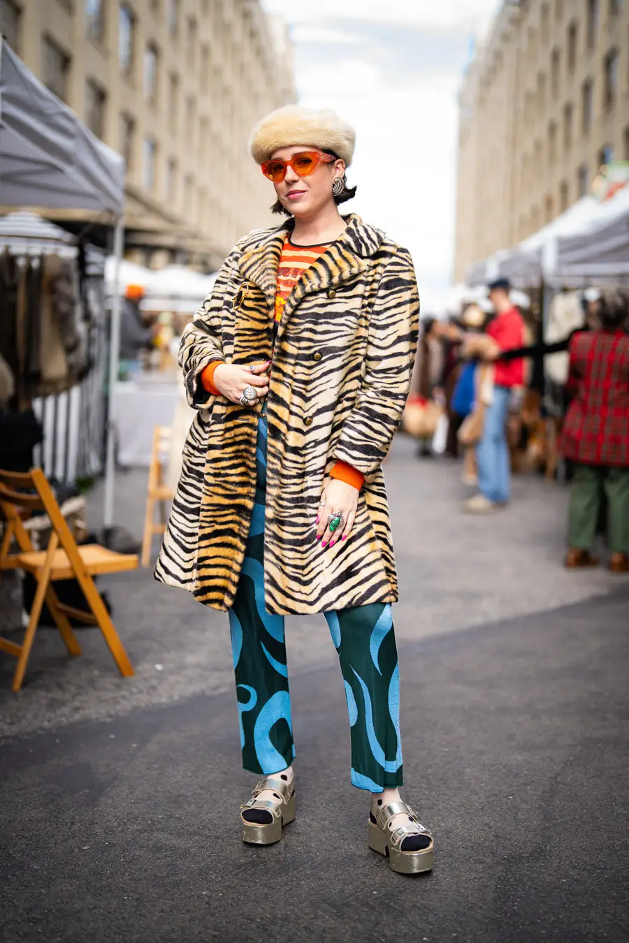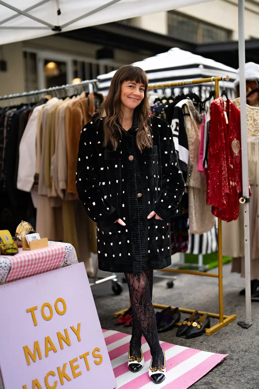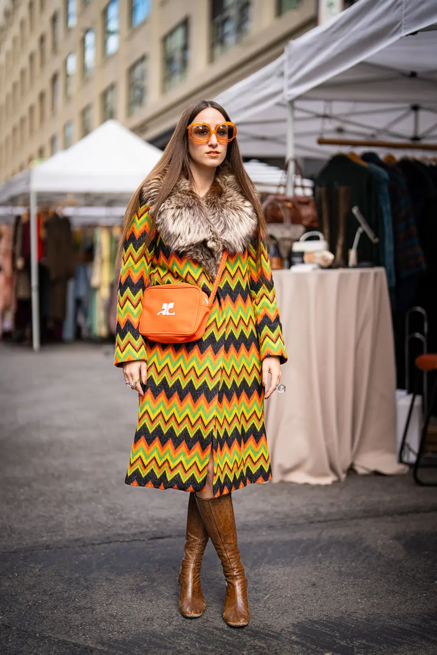 I have an emotional reaction/attachment to each Pickwick month (except unfortunate July and August) by capturing its weather-appropriate, fashion of moment gear: It colors my world: summer white cotton slip dresses, LA fall/winter colored leathers, fuzz-ball faux furs (orange!)and cape crusaders eyeing wool shawls took over the Nov. stalls. Still, there were tons of colors in the midst of browns, blacks, greys, neutrals. It’s not just a feast for style hungry eyes – it’s a color kaleidoscope, no matter what the season, both on hangers and extremely colorful patrons