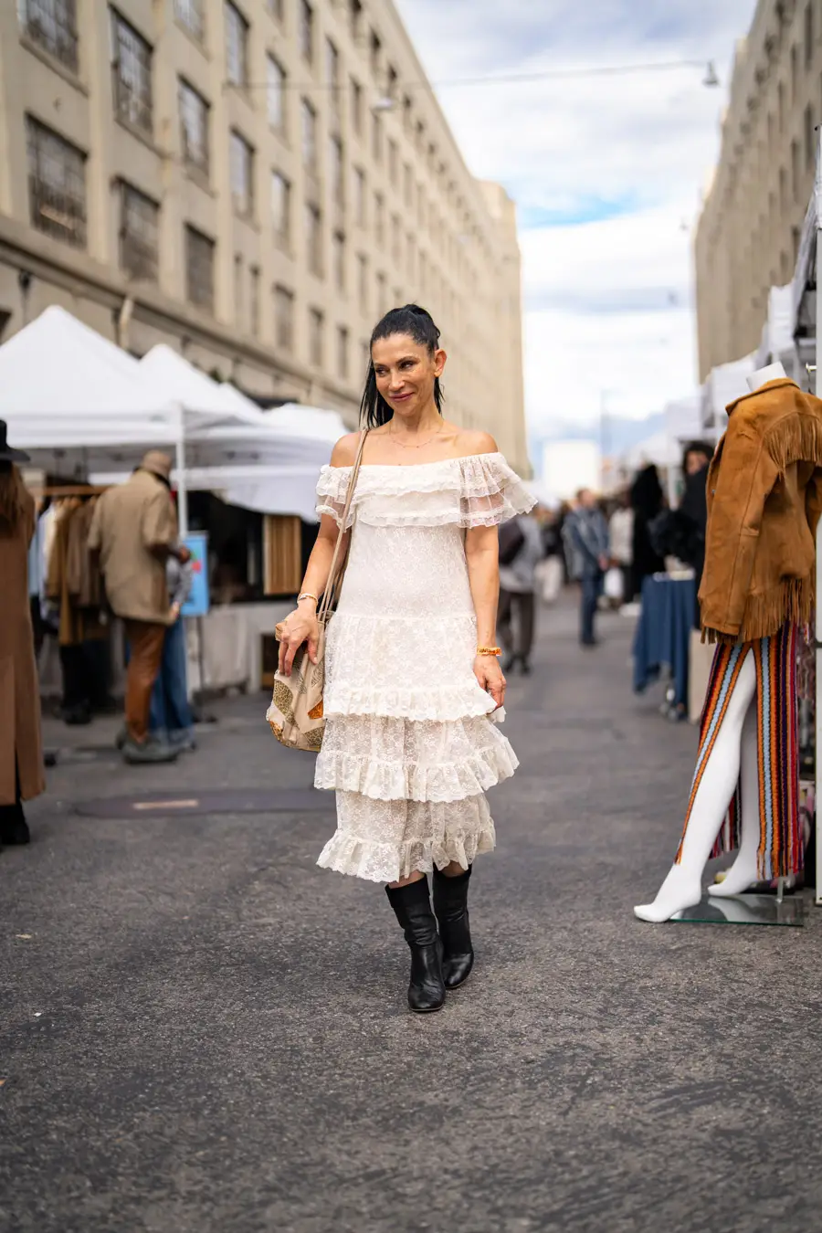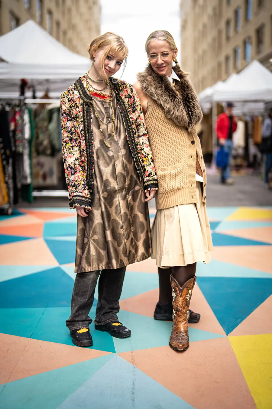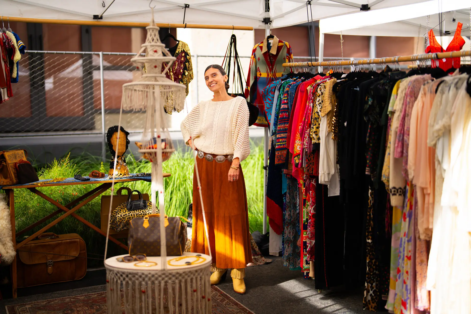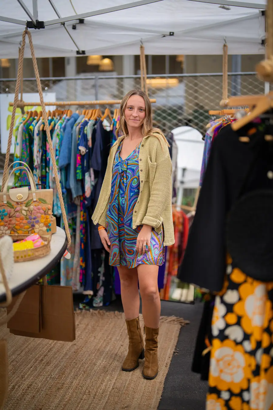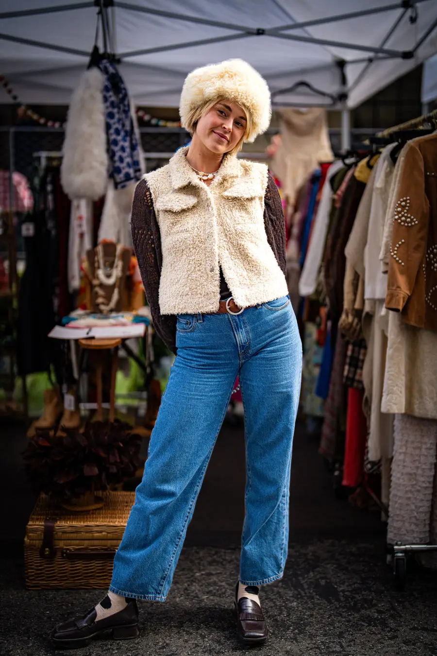 I have an emotional reaction/attachment to each Pickwick month (except unfortunate July and August) by capturing its weather-appropriate, fashion of moment gear: It colors my world: summer white cotton slip dresses, LA fall/winter colored leathers, fuzz-ball faux furs (orange!)and cape crusaders eyeing wool shawls took over the Nov. stalls. Still, there were tons of colors in the midst of browns, blacks, greys, neutrals. It’s not just a feast for style hungry eyes – it’s a color kaleidoscope, no matter what the season, both on hangers and extremely colorful patrons