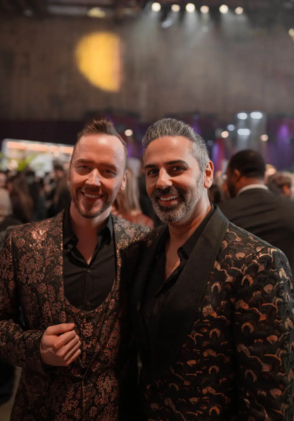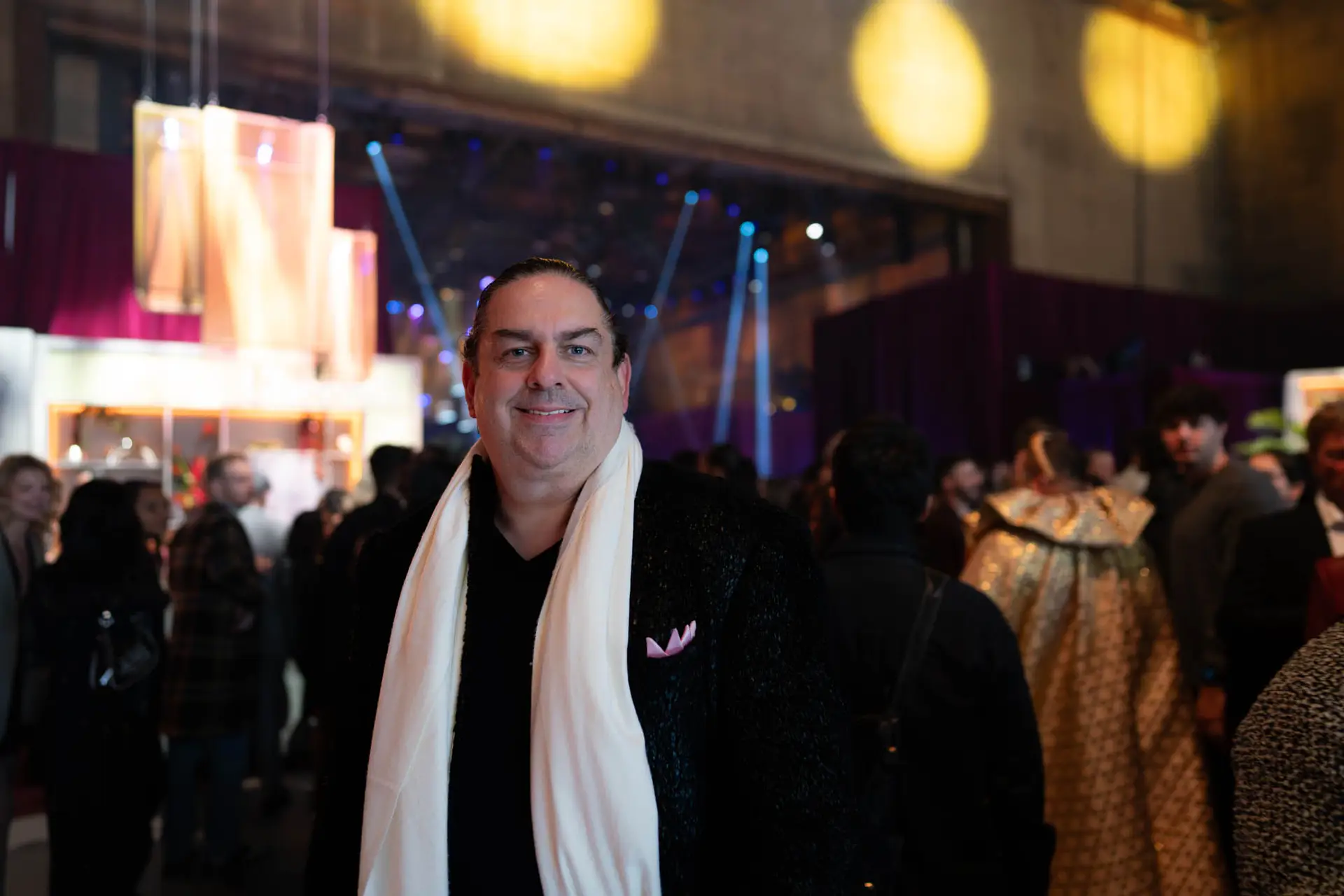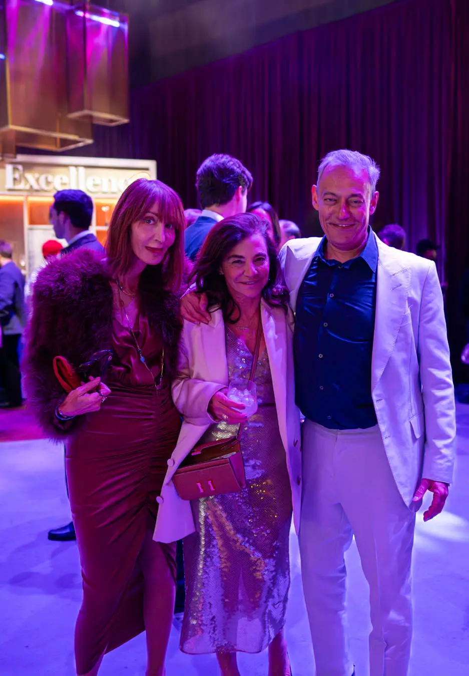 crowd. One of the highlights of the evening was THR editor in chief Maer Roshan’s outfit: a silvery white Tom Ford suit with navy blue shirt. Very John Travolta in Saturday Night Fever.