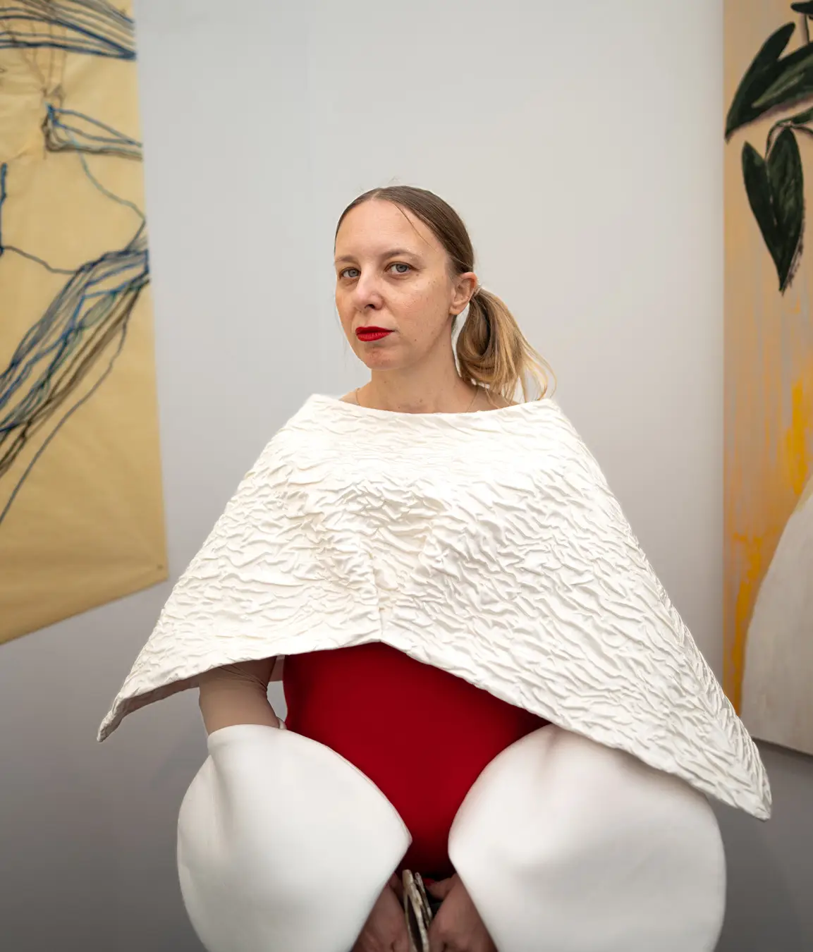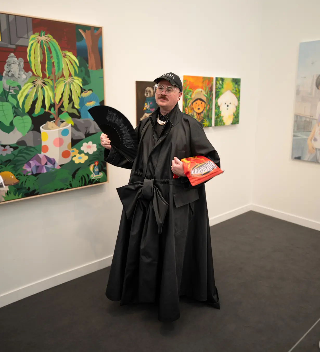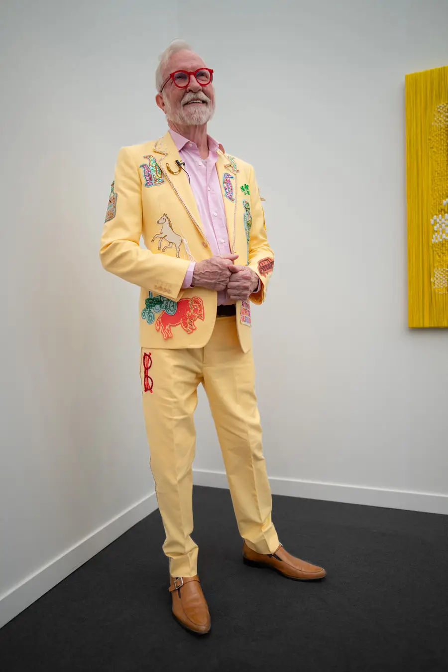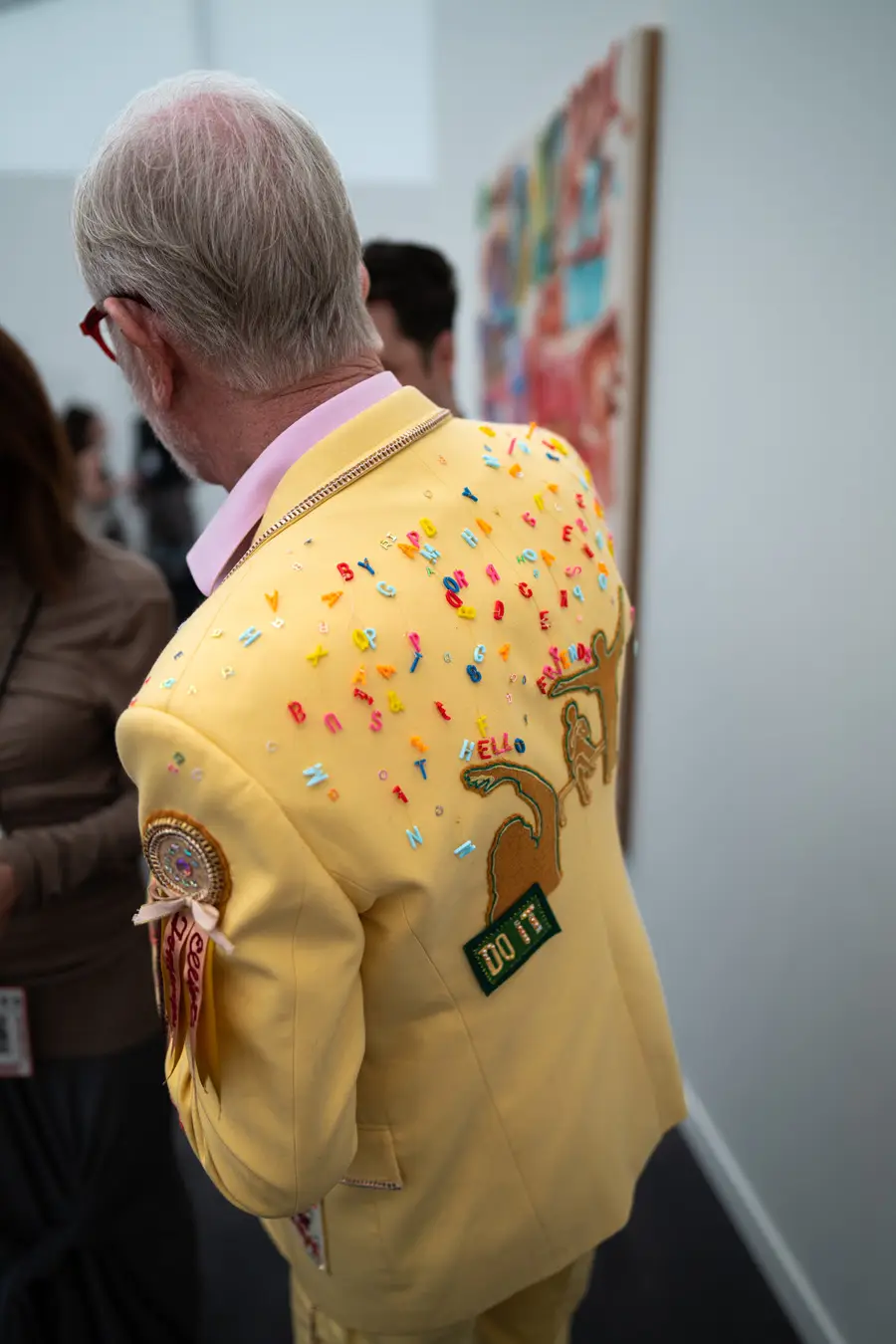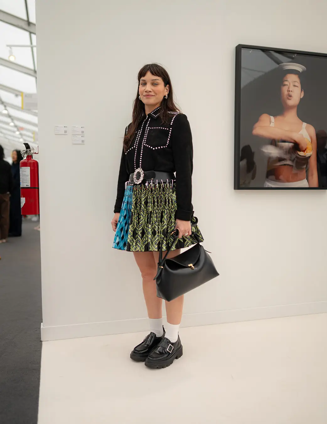The Culture club that attends the annual Frieze L.A. art fair is not one of shrinking art school dropouts. This whimsical group treats its wardrobes as emotional aesthetic armor: there’s little conformity, fabulous eyewear, and in many cases, looks by obscure designer/artist crossover brands. Edgy is the code of the day – standing out enough to fit into the “I am my own art object” club. Takes one to know one.