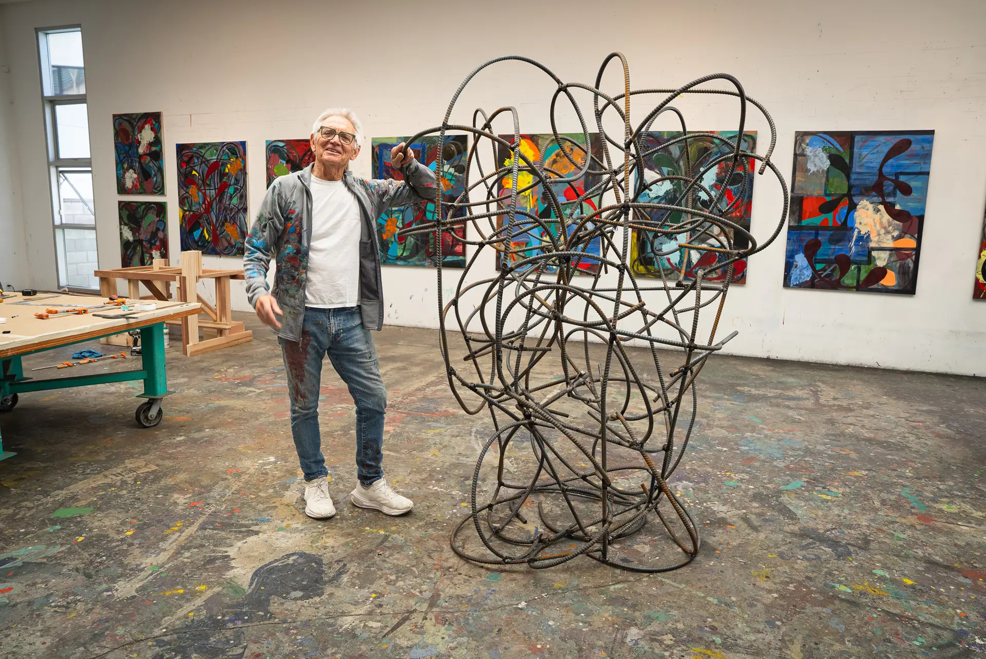 Painter, sculptor, OG Venice artist, storyteller Chuck Arnoldi does it all, out of his voluminous Venice art studio compound, where his restless soul is always using whatever’s on his mind, in his way or in his heart as fodder for more art. Is there an eighty year old as prolific, imaginative, funny, cool, sly, hip and well dressed as this guy? We think not. Why is he so beloved? Besides for being a genius, he’s a lover of life.